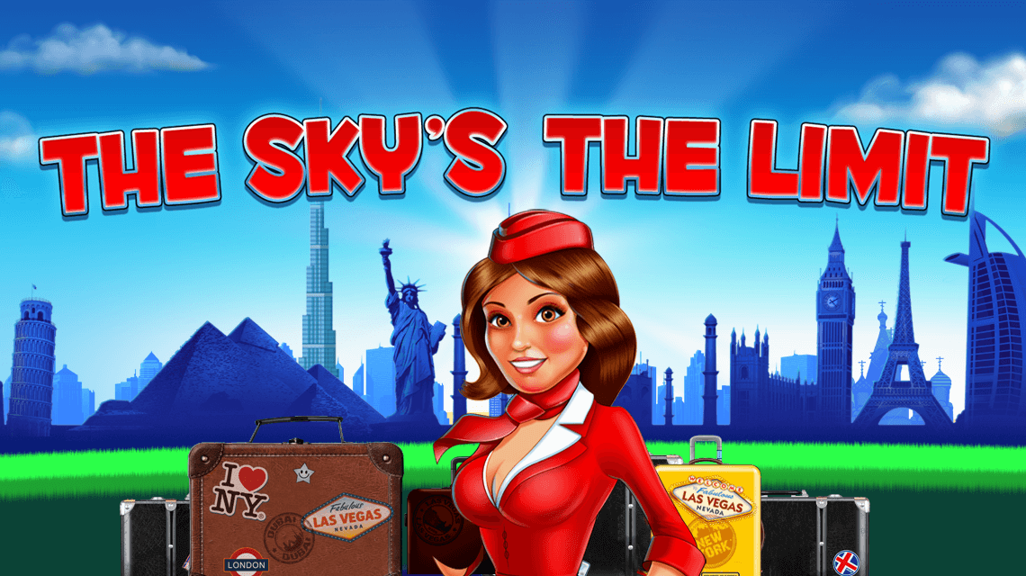 Unsurprisingly, The Sky’s The Limit’s symbols, although using the usual A to 10 playing cards, includes pilots, stewardess’, and 3 destinations: New York Dubai, and Las Vegas. The most valuable is Vegas, as land 5 of a kind on a payline, and you’ll be awarded 25x your total bet.